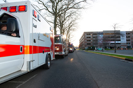 City of Long Branch shows their support of MMC staff with a queue of fire trucks, police cars and ambulances recognizing hospital staff with a salute of lights and sirens.