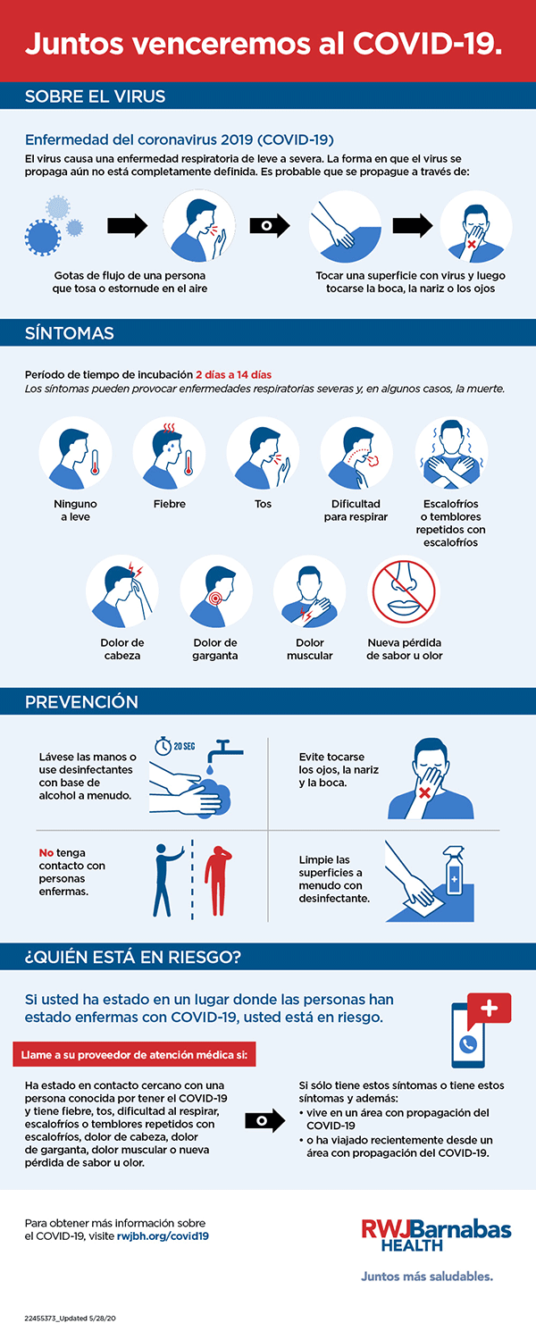 Ha estado en contacto cercano con una persona conocida por tener el COVID-19 y tiene fiebre, tos, dificultad al respirar, escalofríos o temblores repetidos con escalofríos, dolor de cabeza, dolor de garganta, dolor muscular o nueva pérdida de sabor u olor.