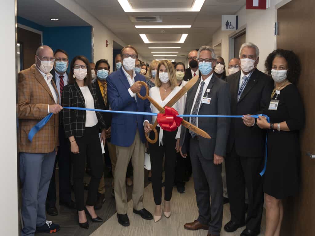 Jeremy Grunin, President, Grunin Foundation; Heather Barberi, Executive Director, Grunin Foundation; Jay Grunin, Chairman, Grunin Foundation; Azize Grunin; Patrick Ahearn, Chief Executive Officer, Community Medical Center, Freeholder Joseph H. Vicari, Ocean County, and Meika Neblett, MD, MS, Chief Medical & Academic Officer, Community Medical Center, took part in a ribbon cutting ceremony at the celebration to open the Grunin Graduate Medical Education Wing at Community Medical Center.