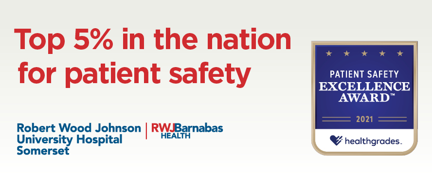 Robert Wood Johnson University Hospital (RWJUH) Somerset, an RWJBarnabas Health facility, has been recognized with the Healthgrades 2021 Patient Safety Excellence AwardTM. This distinction places RWJUH Somerset among the top 5% in the nation for patient safety based on patient safety data from acute care hospitals evaluated by Healthgrades, the leading marketplace connecting patients and providers.