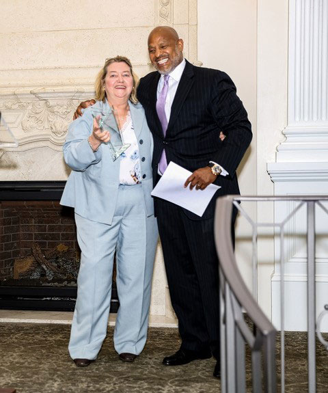 District 1199J President Susan M. Cleary, presents Darrell K. Terry, Sr., MHA, MPH, FACHE, FHELA, President and Chief Executive Officer, Newark Beth Israel Medical Center and Children’s Hospital of New Jersey with the Aberdeen David Outstanding Labor Relations Award