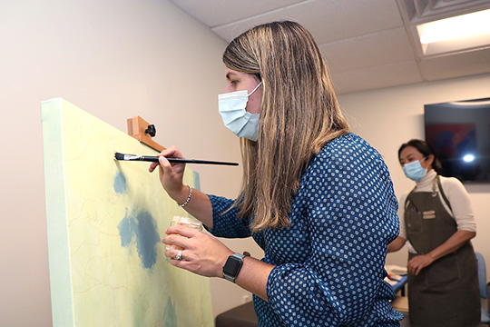 Pictured painting is Jamie Sammons member of the Young Professionals Group, Robert Wood Johnson University Hospital Hamilton Foundation.