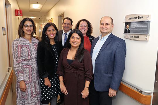 Pictured (left to right): Rachana Singh, MD, Meera Yogarajah, MD, Richard Freeman, President & Chief Executive Officer, Amy German, BSN, RN, OCN, Director of the Cancer Center, Firas G. Eladoumikdachi, MD, and in front, Malini Patel, MD, Director, Medical Oncology.