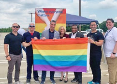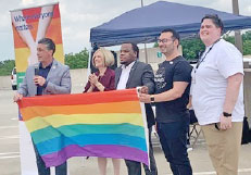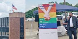 Pictured left, the Pride flag was raised to fly over Clara Maass Medical Center. Pictured right, Reginald Bledsoe, Director of the Essex County Office of LGBTQ Affairs.