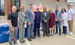 From left: Belleville Councilman Vincent Cozzarelli; Celeste Oranchak, Vice President, Foundation and Development, Clara Maass Medical Center (CMMC); Frank Dos Santos, DO, Chief Medical Officer, CMMC; Frank Mazzarella, MD, Chief Continuum of Care and Medical Services Officer, CMMC; Reginald Bledsoe, Director of the Essex County Office of LGBTQ Affairs; Mary Ellen Clyne, PhD, President and Chief Executive Officer, CMMC; Belleville Mayor Michael Melham; Teresa DiElmo, RN, MSN, Chief Nursing Officer, CMMC; and Allison Hogan, Family Support Specialist, Psychiatric Emergency Screening Service, CMMC.
