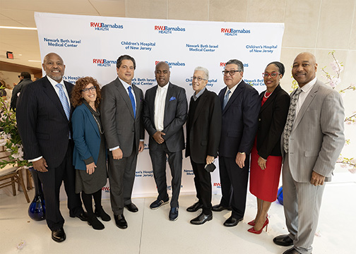 L to R: Darrell K. Terry, Sr., MHA, MPH, FACHE, FHELA, President & Chief Executive Officer, Newark Beth Israel Medical Center and Children’s Hospital of New Jersey; Alice Cohen, MD, Section Chief, Hematology & Director Adult Sickle Cell Program, Newark Beth Israel Medical Center and Children’s Hospital of New Jersey; Mark E. Manigan, President and Chief Executive Officer, RWJBarnabas Health; Honorable Ras J. Baraka, Mayor, City of Newark; Marc E. Berson, Chairman Emeritus, Board of Trustees, NBI and CHoNJ; Vice Chair, Board of Trustees, RWJBarnabas Health; Francis J. Giantomasi, Esq., Board Chair, Newark Beth Israel Medical Center and Children’s Hospital of New Jersey; Atiya Jaha-Rashidi, MHA, RN, Chief Equity Officer & VP, Community Relations, And Rev. Phillip Gilmore, Newark Beth Israel Medical Center.