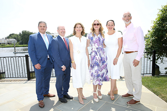 Keynote speaker Stephanie March, third from right, gathers with, from left, Dr. Richard Lazzaro, Chief of Thoracic Surgery for the RWJBarnbas Health Southern Region; Dr. Steven Libutti, Senior Vice President, Oncology Services, RWJBarnabas Health; Director, Rutgers Cancer Institute of New Jersey; and Vice Chancellor for Cancer Programs, Rutgers Biomedical and Health Sciences; Claire Knopf, Chair, MMC Foundation Board Chair and Co-Chair for the Leon Hess Cancer Center Council; Caitlin Olson, Vice President of Development, MMC and MMC Southern Campus (MMCSC); and Eric Carney, President & CEO, MMC and MMCC