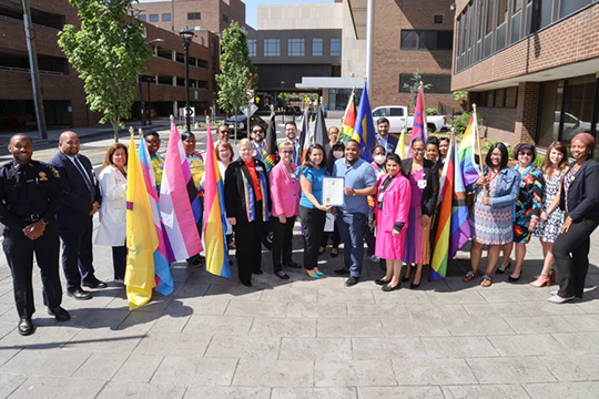 “It is important for us to gather each year to honor and celebrate the LGBTQ+ community and allies. This flag raising represents our commitment to advocating and educating around issues that impact the LGBTQ+ community at large,” said Atiya-Jaha Rashidi, MHA, RN, Chief Equity Officer, and Vice President of Community Relations.