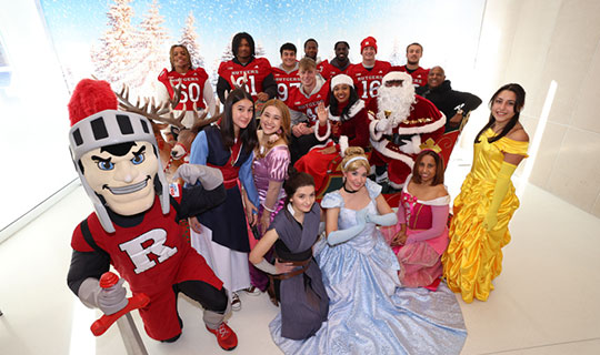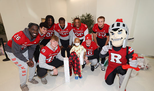 This year, as part of Chop4Change and in partnership with RWJBarnabas Health, Rutgers football donated 100 coats to the Newark Beth Israel Holiday Cheer for Children program, and several team members and their Mascot Sir Henry were on hand to deliver the gifts in person.