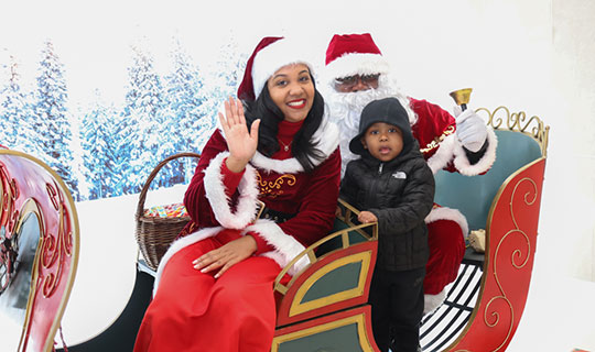 Santa and Mrs. Claus came down from the North Pole to greet the families as they arrived to receive their gifts, joined by a cast of princesses including, Cinderella, Rapunzel, Milan, Belle, and Rey from Star Wars.