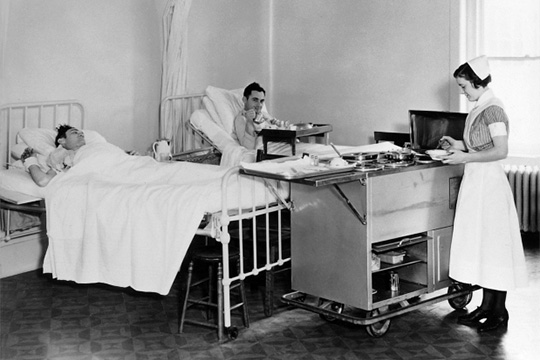 A historic photo of an early patient ward at Long Branch Hospital, now Monmouth Medical Center.