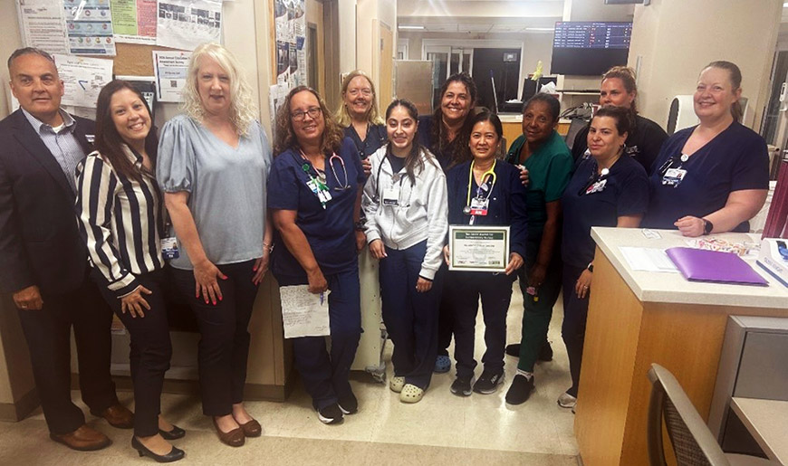 CCU team members are pictured above with hospital leadership from left, Dr. Phil Passes, Chief Administrative Officer and Mabel LaForgia, Chief Nursing Officer.