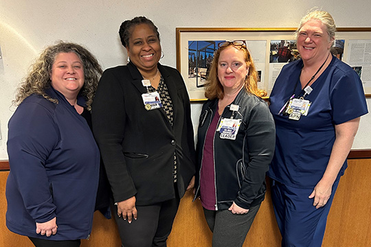 Pictured are nurse leaders at RWJUH Hamilton also part of its Geriatric Steering Committee (left to right): Ceara Phillips, BSN, RN, Nurse Manager, Telemetry Units; Dawn Hutchinson, MSN, RN, PCCN-K, NEA-BC, Chief Nursing Officer; Lisa Nevius, MSN, RN, OCN, NEA-BC, Nurse Manager for the Medical-Surgical Units, and Cynthia Russo, MSN, RN-BC, APN,C-Clinical Nurse Specialist, Center for Professional Development, Innovation and Research at RWJUH Hamilton.