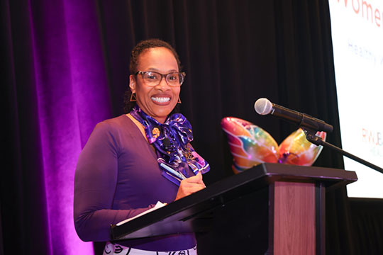 (PHOTO) Panel moderator Atiya Jaha-Rashidi, MHA, RN, Chief Equity Officer and Vice President of Community Relations, Newark Beth Israel Medical Center and Children’s Hospital of New Jersey, invited attendees to ask candid questions of the panelists in a supportive environment at Newark Beth Israel Medical Center’s 11th Annual Women’s Health Day.