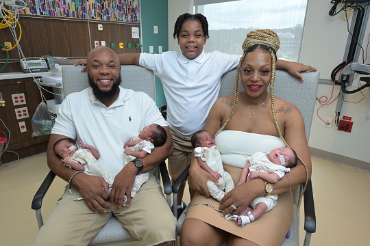 NJ Monthly interviewed Aja Kennon and Emmanuel Volmar of East Orange who were stunned to learn they’d spontaneously conceived quadruplets last year, a one-in-700,000 chance. Despite the chaos, they’ve never stopped counting their blessings. Click here to read about their story and experience at Cooperman Barnabas Medical Center.