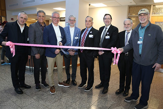 Pictured at the Lennar Foundation Wall of Hope Ribbon Cutting Ceremony at MMCSC are: Monmouth Medical Center Southern Campus Foundation Board of Trustee members (from left) David Greisman, Tom Calabro, Robert Calabro, Dan Stizza, Dr. Philip Passes, Chief Administrative Officer, Monmouth Medical Center and Monmouth Medical Center Southern Campus; Menashe Miller, Ben Heinemann and Robert Lawson.