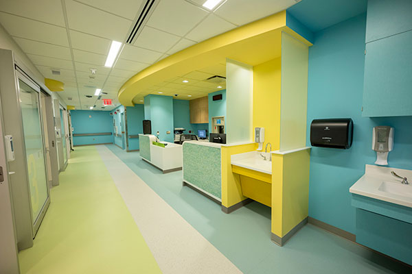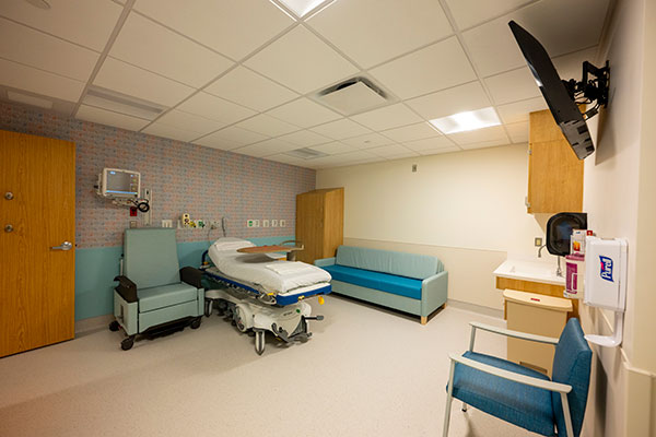 The Children’s Same Day Services center features five private treatment rooms, including a dedicated sensory room, designed to create a calming and supportive environment for children undergoing treatments that do not require an overnight stay.