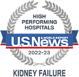 - Nationally recognized by U.S. News and World Report as a High Performing Hospital for Kidney Failure for 2022-2023