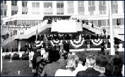 The ceremony is attended by Lyndon A. Peer, M.D., president of the Medical Staff; Martin Levin, co-chairman of the Building Committee; Congressman George M. Wallhauser; and a host of other dignitaries.