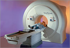 With this new system, the physician will check the location, then deliver precise radiation therapy based on a customized plan. TomoTherapy combines precise 3-D imaging from computerized tomography (CT scanning) with highly targeted radiation beams.