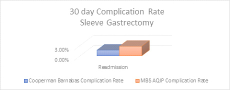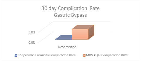 Our rate of complications for Gastric Bypass surgeries are better than national averages as well.