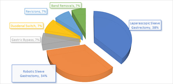 Bariatric programs that perform a higher volume of surgeries have better outcomes. Cooperman Barnabas is considered a high-volume center. Below is a breakdown of surgical volume at Cooperman Barnabas for Calendar Year 2022: