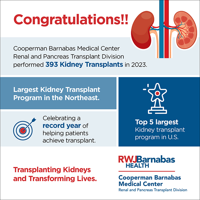 Thanks to generous donors in 2024, the Renal and Pancreas Transplant Division at Cooperman Barnabas Medical Center celebrated a record year of helping patients achieve transplant.