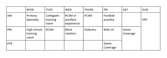 - Ancillary experiences (such as physical therapy, sports cardiology, concussion clinic, sports nutrition)