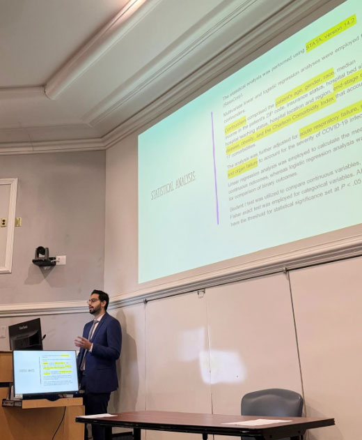 Journal Club is a monthly conference. Residents critically appraise pertinent research articles from well-respected journals. Representatives of each resident class present, facilitate, and evaluate the methodology and clinical applications present in the article. While three presenters moderate the discussion, all residents must have read the article and be expected to be able to discuss it critically.