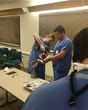 Our program values the ability to work with our industry partners and their contribution to resident education. Chief residents are responsible for coordinating these monthly events with company representatives, which include saw bones models, in-house cadaver labs and travel to local industry headquarters for more involved experiences.
