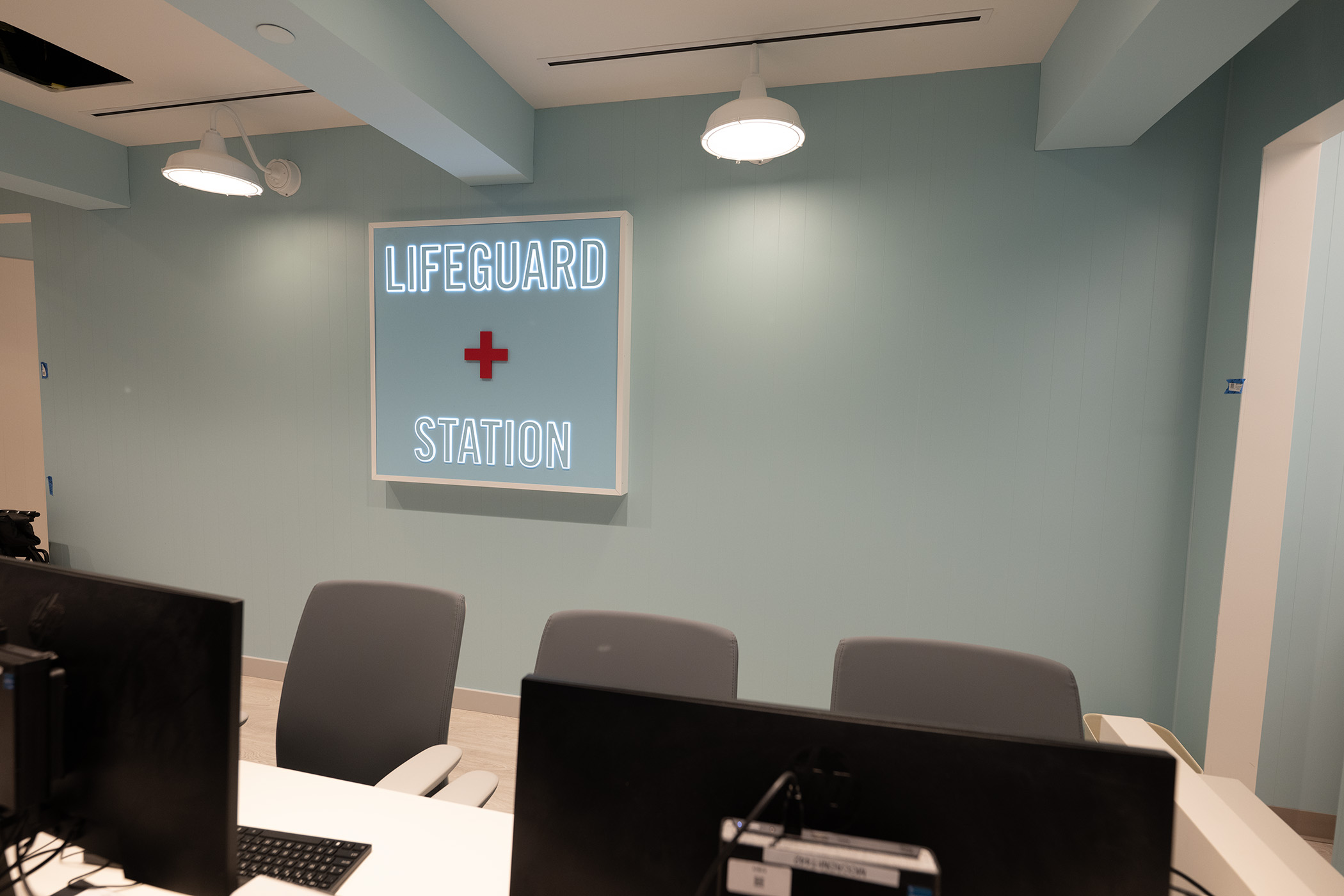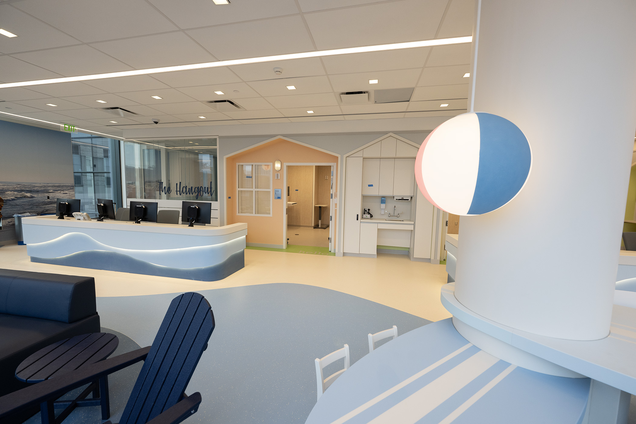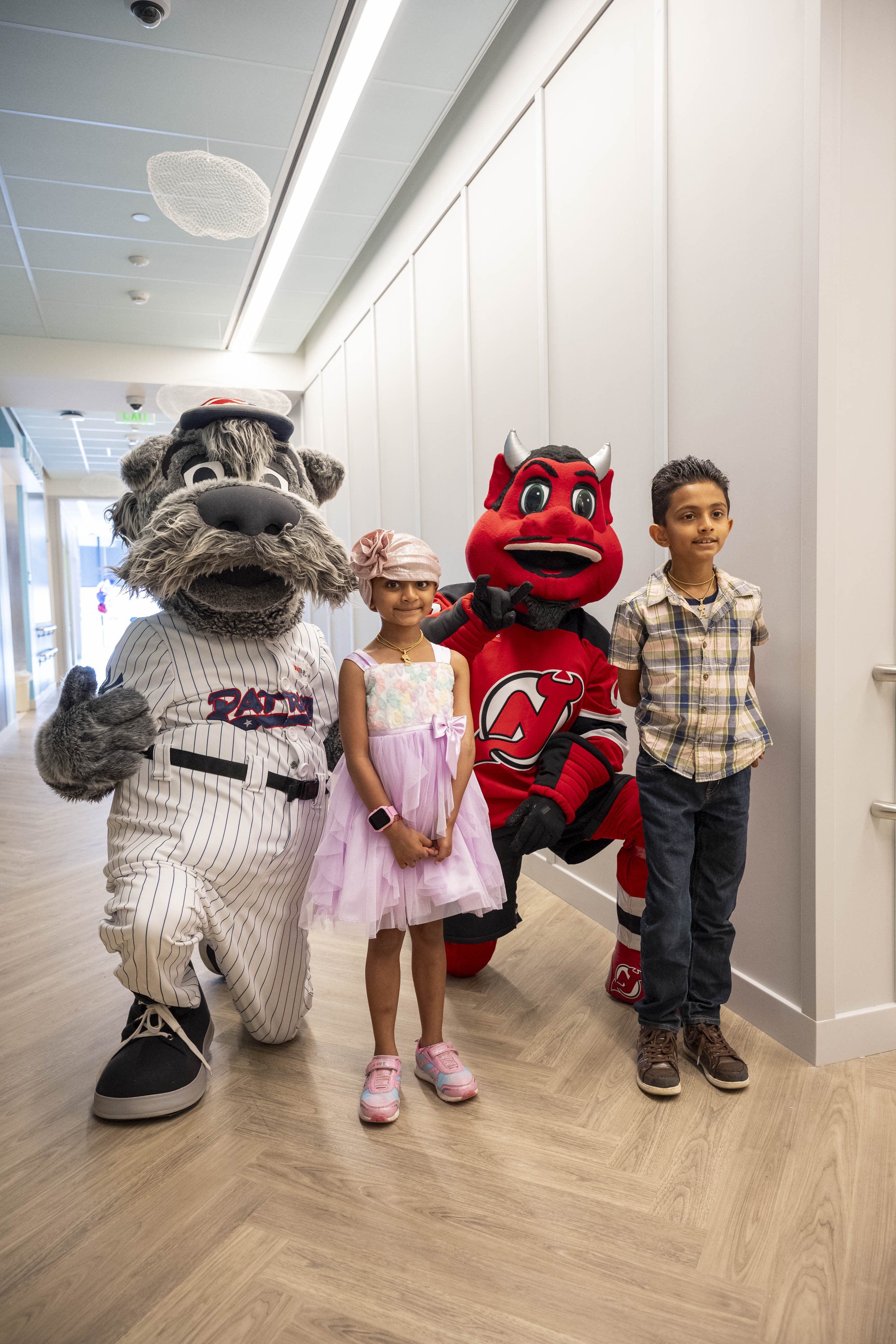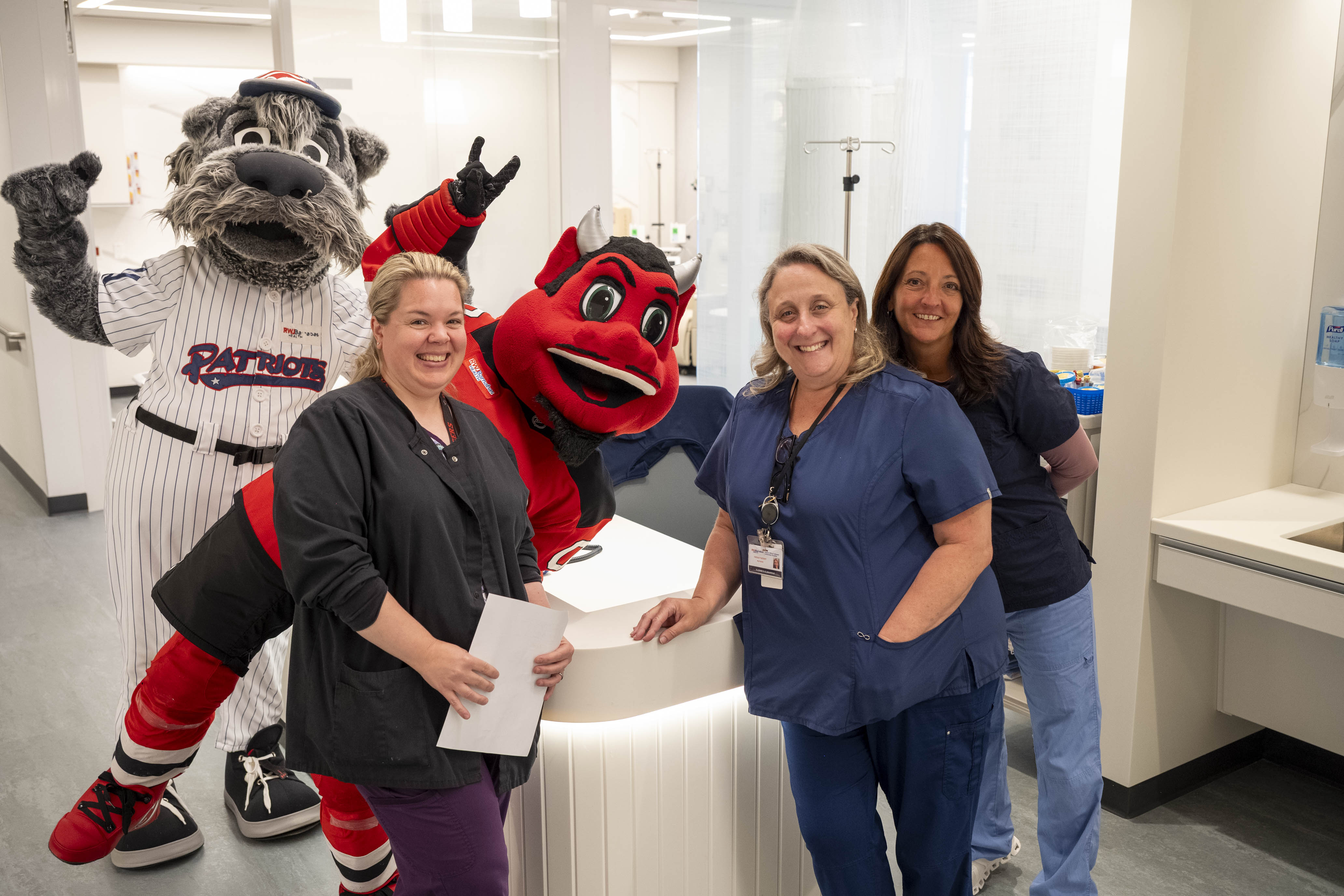 New Jersey Devils N.J., and Somerset Patriots Sparkee visit with patients and employees to celebrate the opening of the Jack & Sheryl Morris Cancer Center
