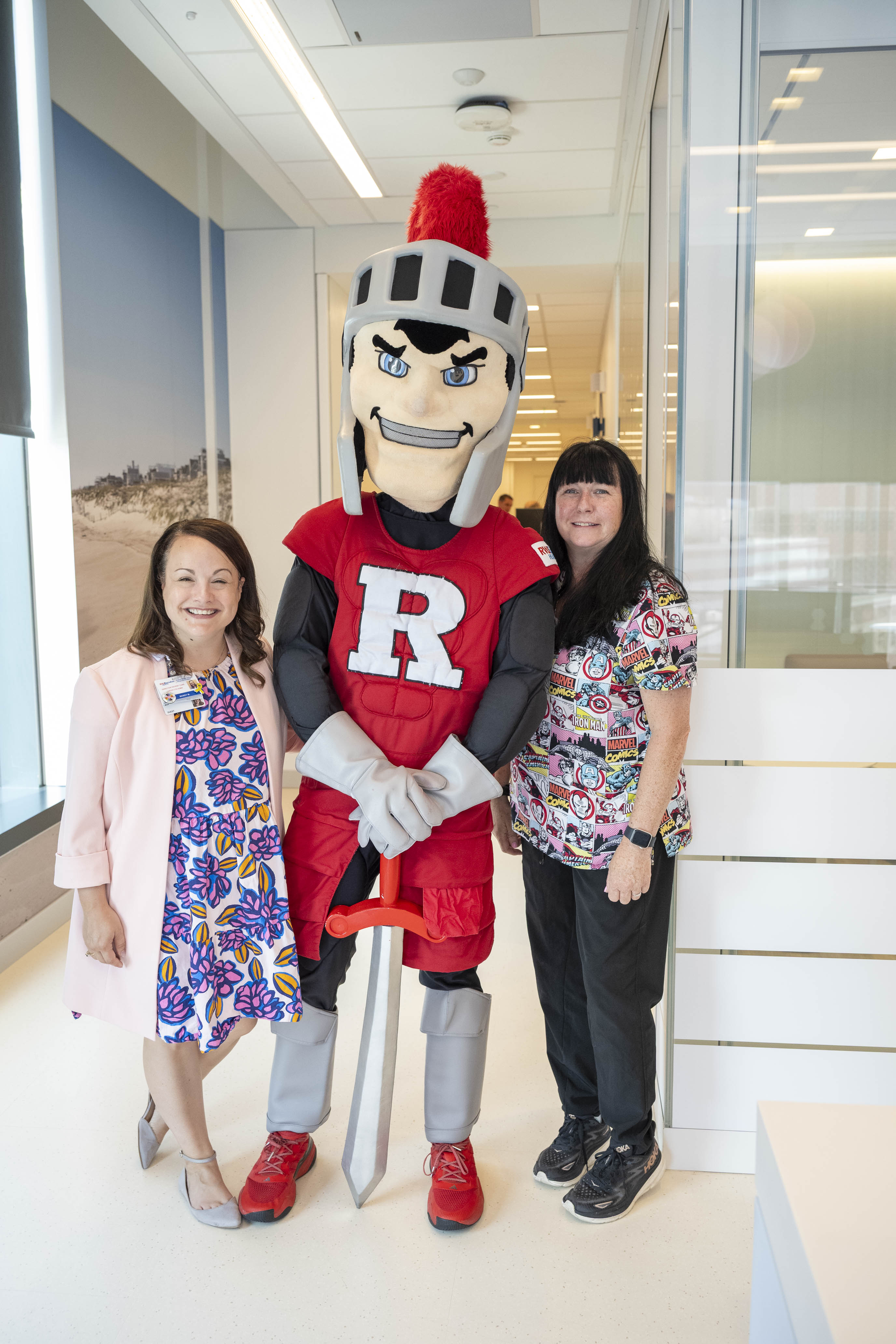 The Rutgers Scarlet Knight helps celebrate the opening of the Jack & Sheryl Morris Cancer Center