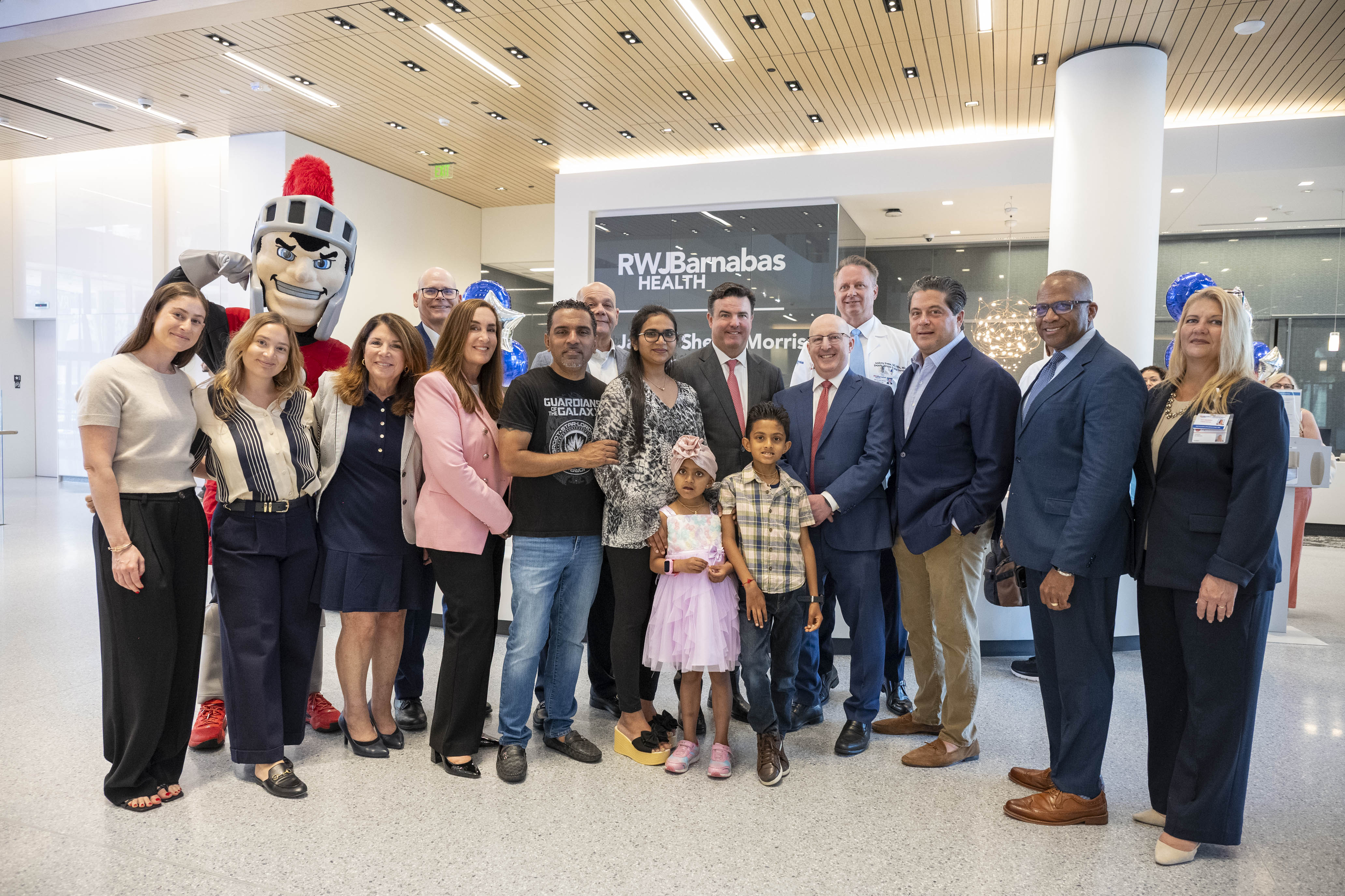 5 year old patient Serina Patel and her family join the leadership of RWJBarnabas Health, Rutgers Cancer Institute and Robert Wood Johnson University Hospital and the Rutgers Scarlet Knight at the opening of the new Jack & Sheryl Morris Cancer Center