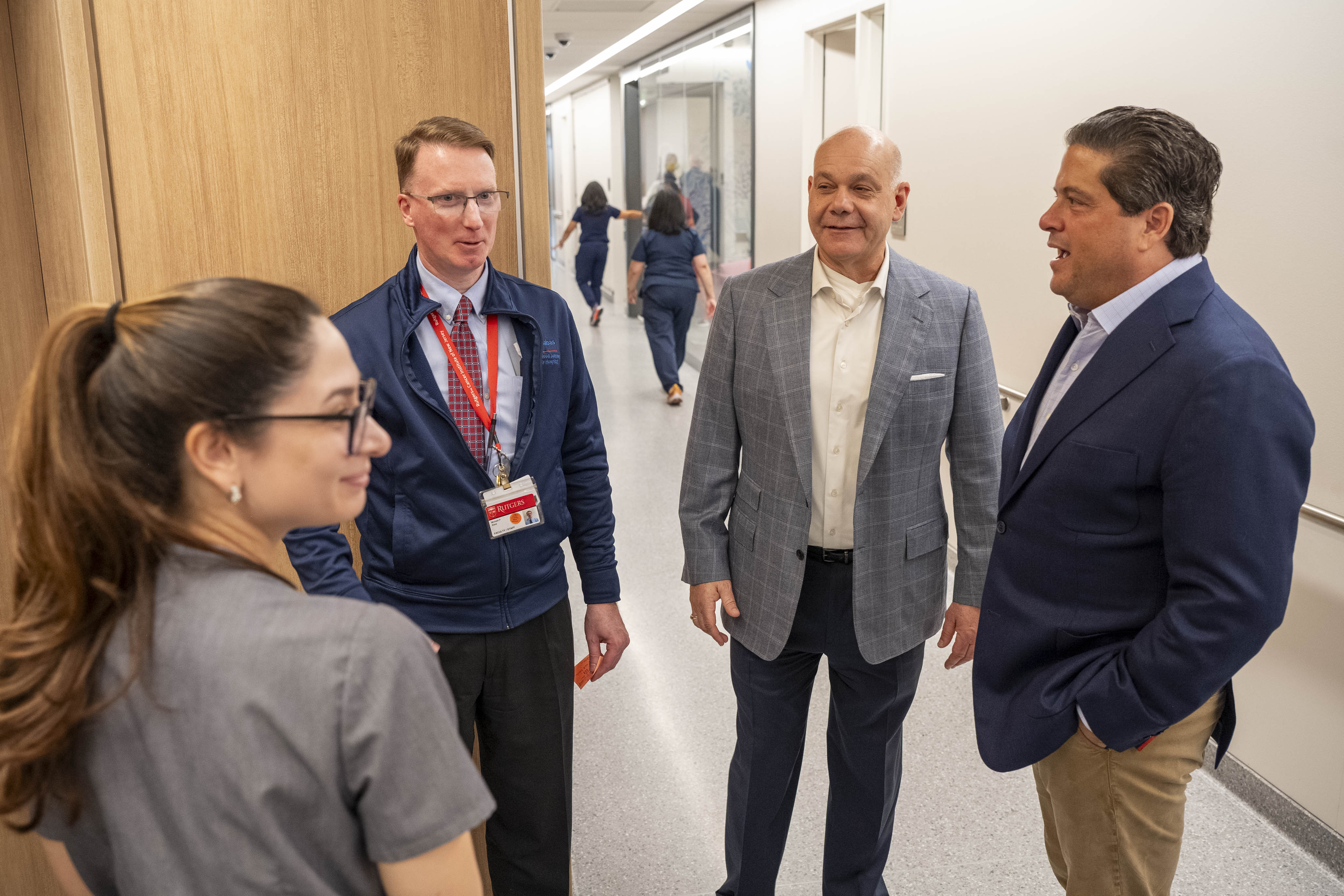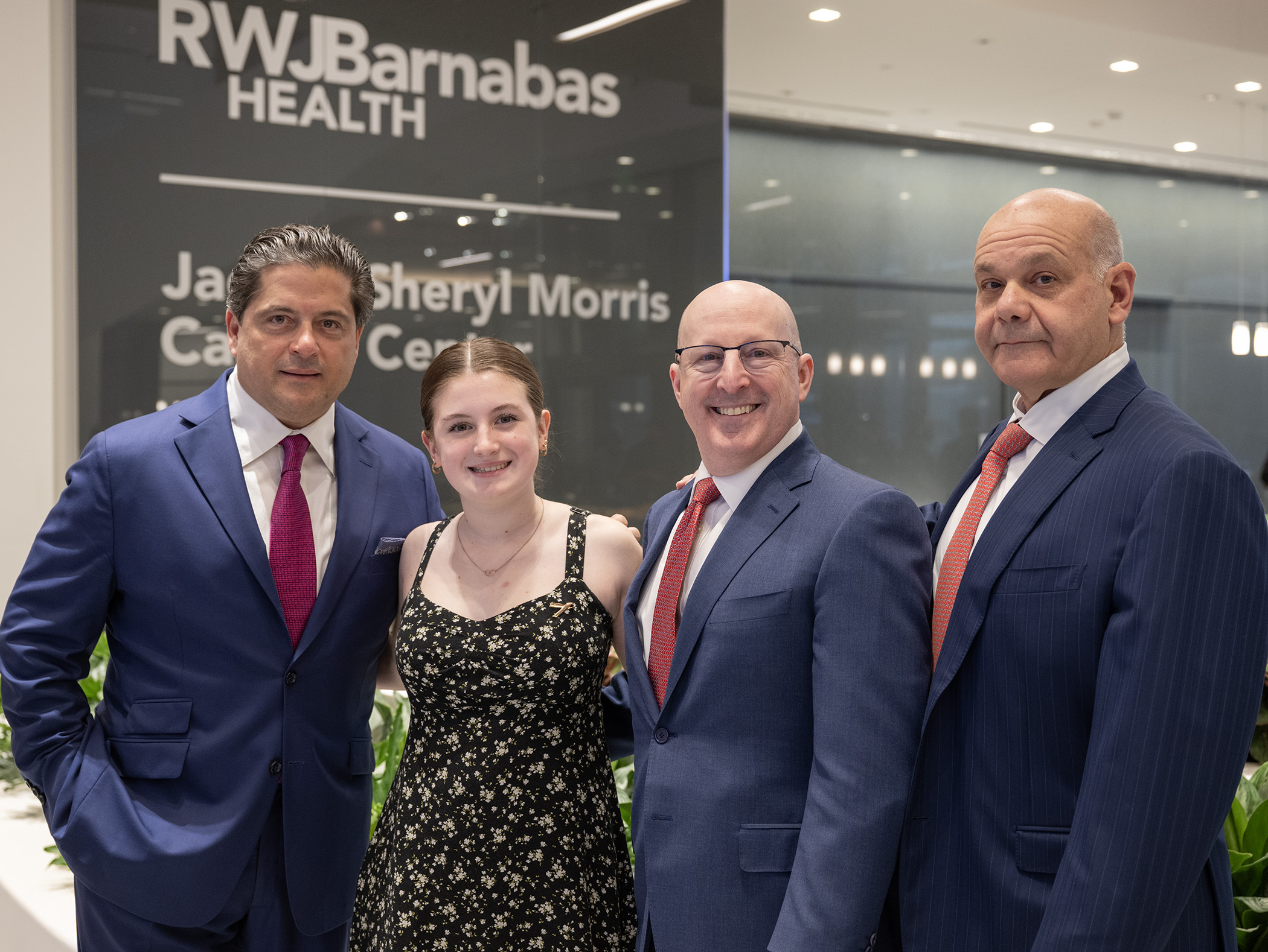 Jack Morris, Chair of the Board of RWJUH, and Mark Manigan, President and CEO of RWJBarnabas Health express their graduate to Michael Kane, Executive Director of Pharmacy Services, Jack & Sheryl Morris Cancer Center