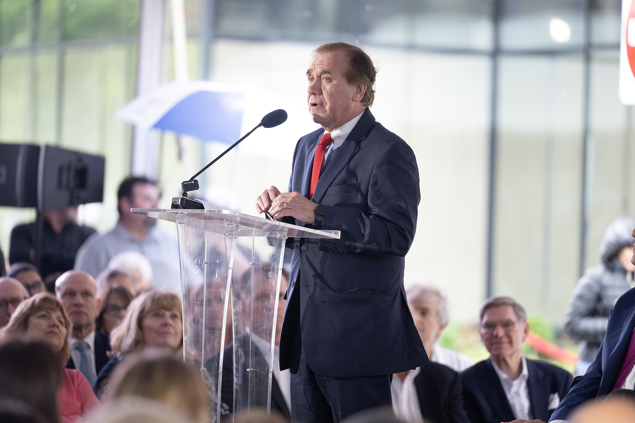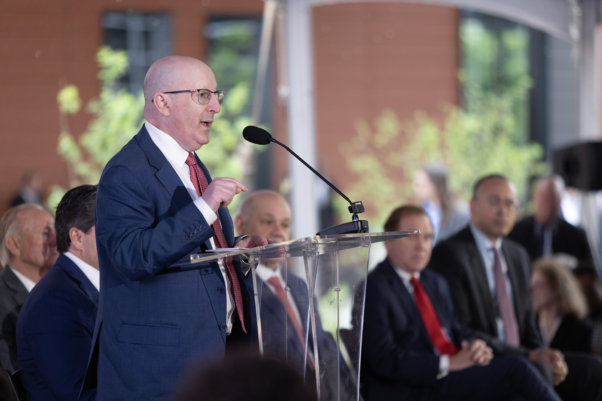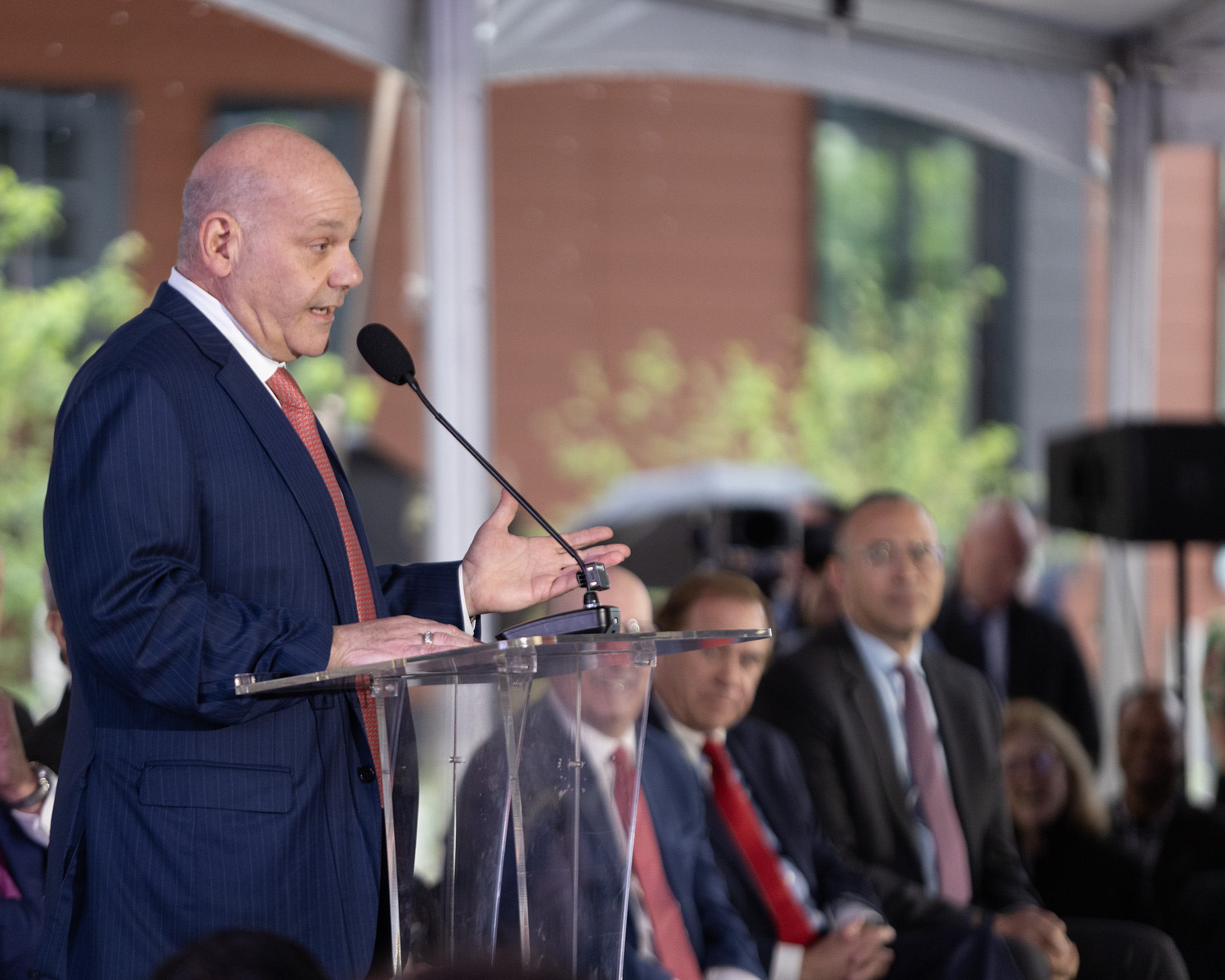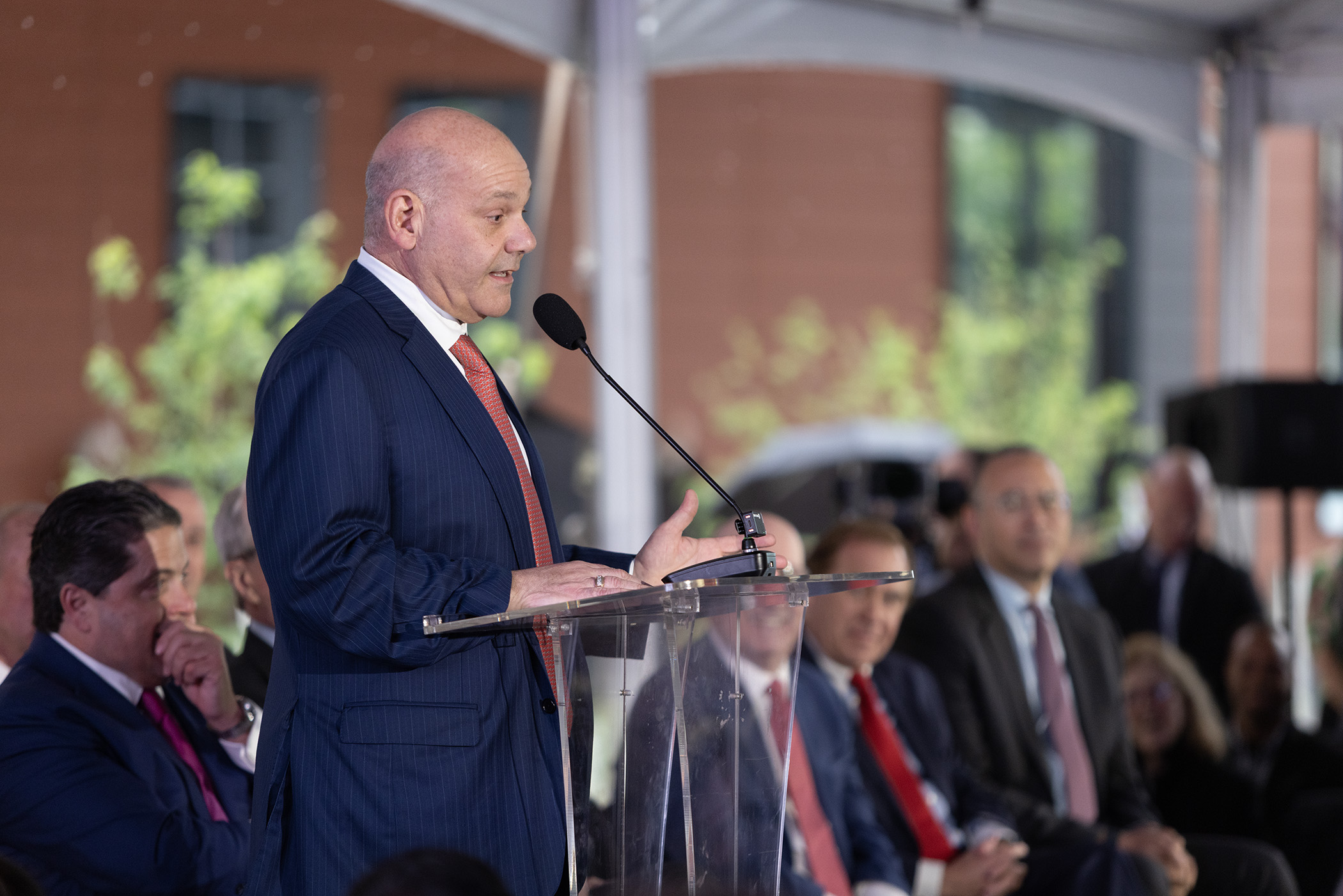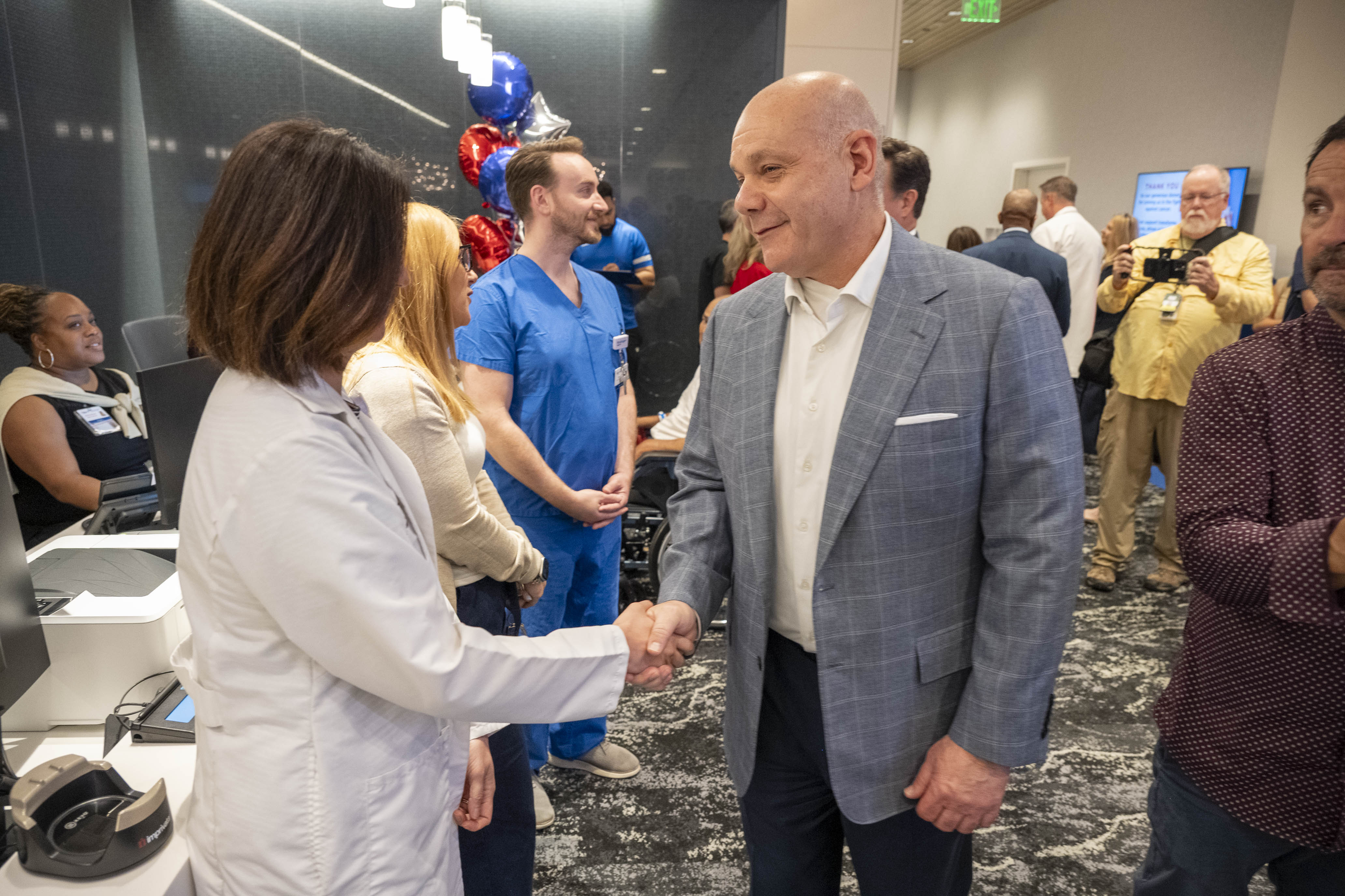 Jack Morris, Chair of the Board of RWJUH, shares his gratitude with the staff of the new Jack & Sheryl Morris Cancer Center on opening day.