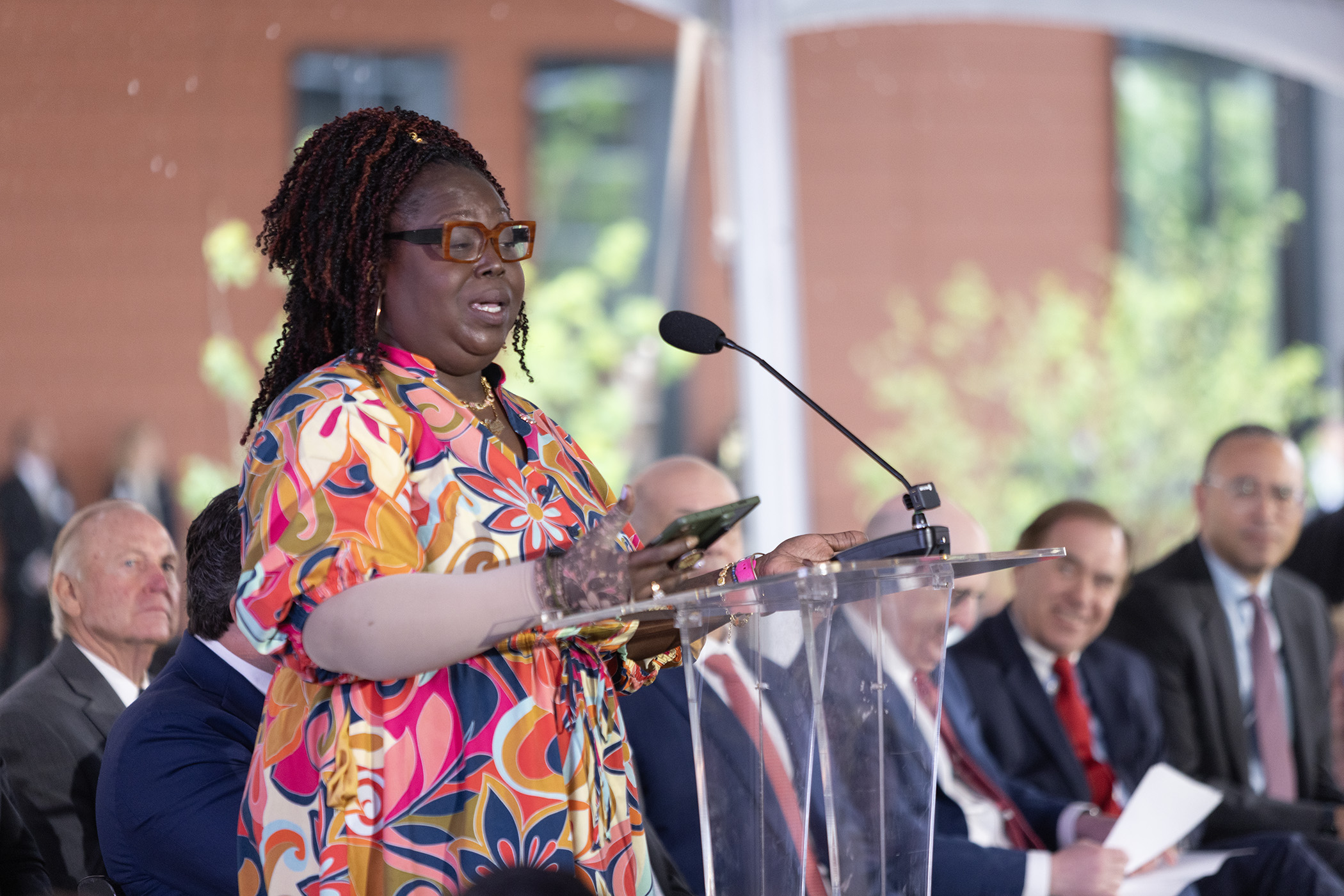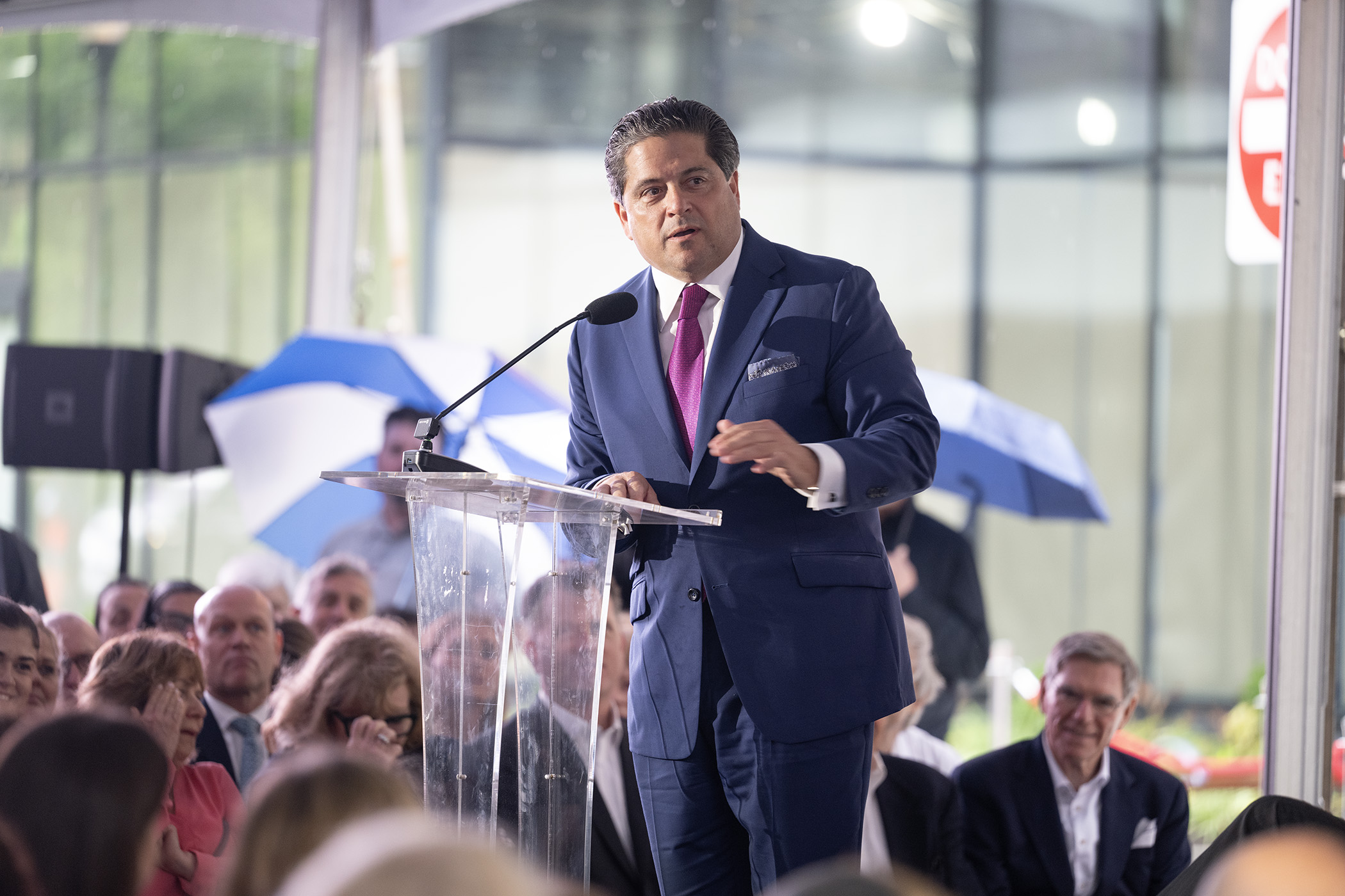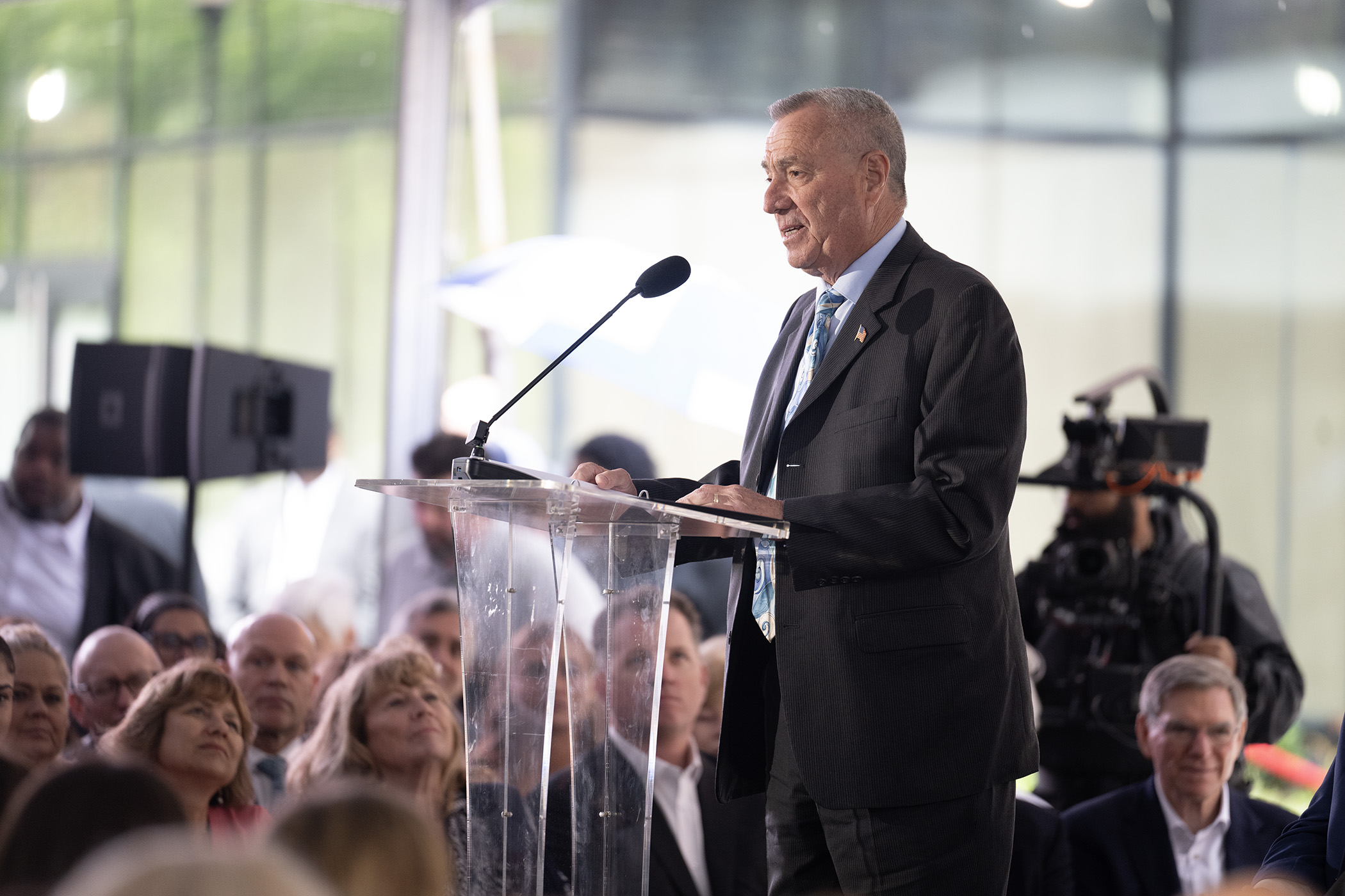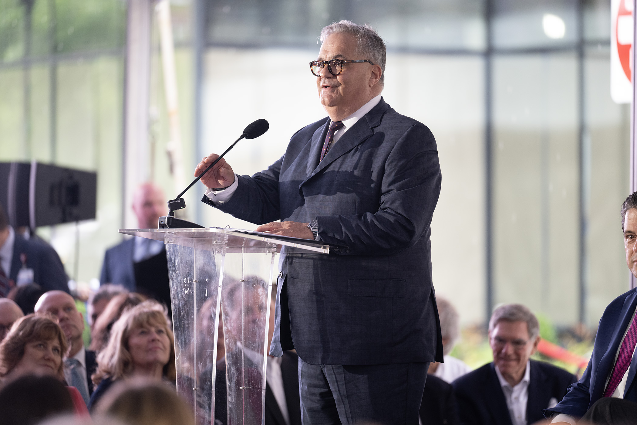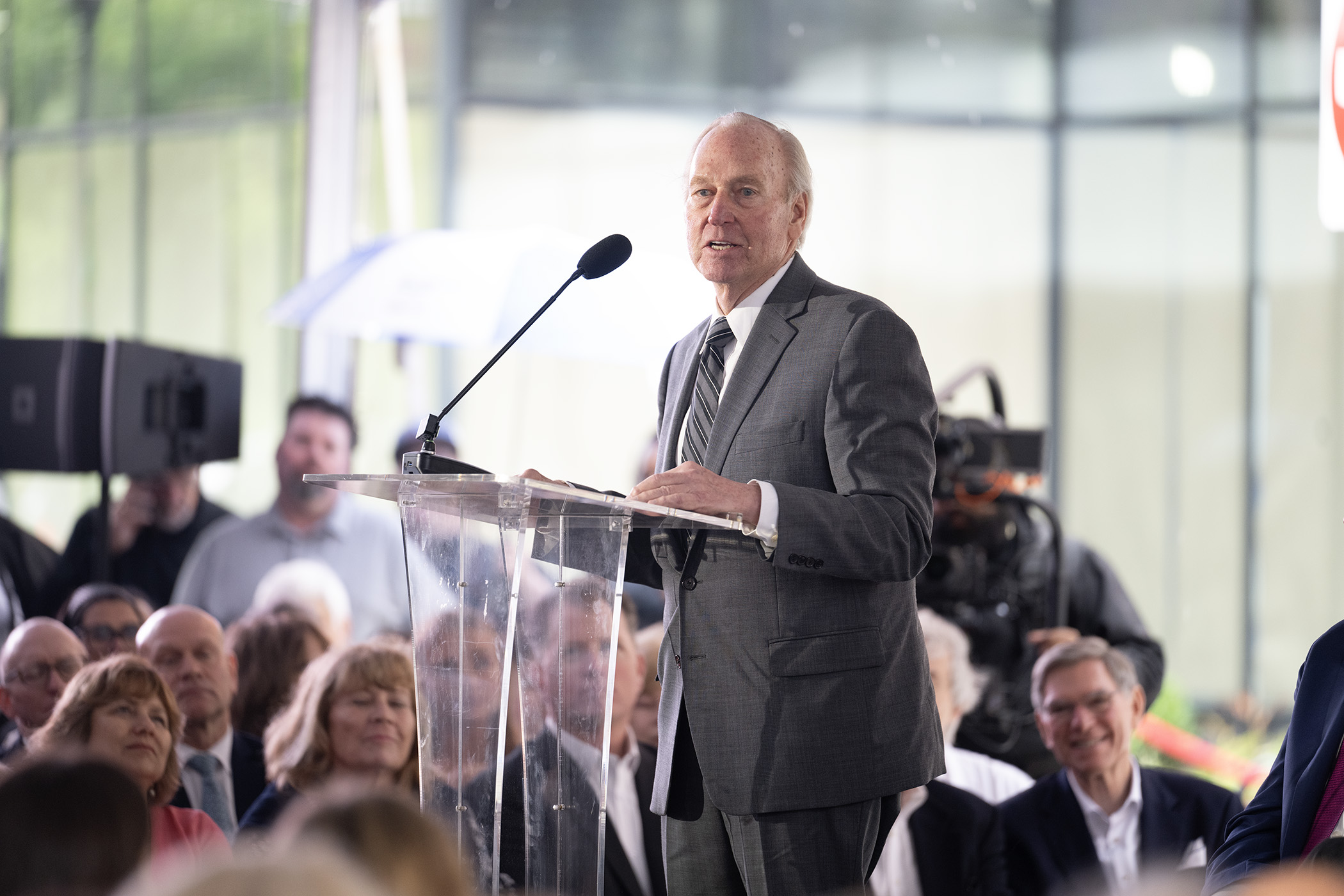 Jack Morris, Chair of the Board of RWJUH, shares his gratitude with the staff of the new Jack & Sheryl Morris Cancer Center on opening day.