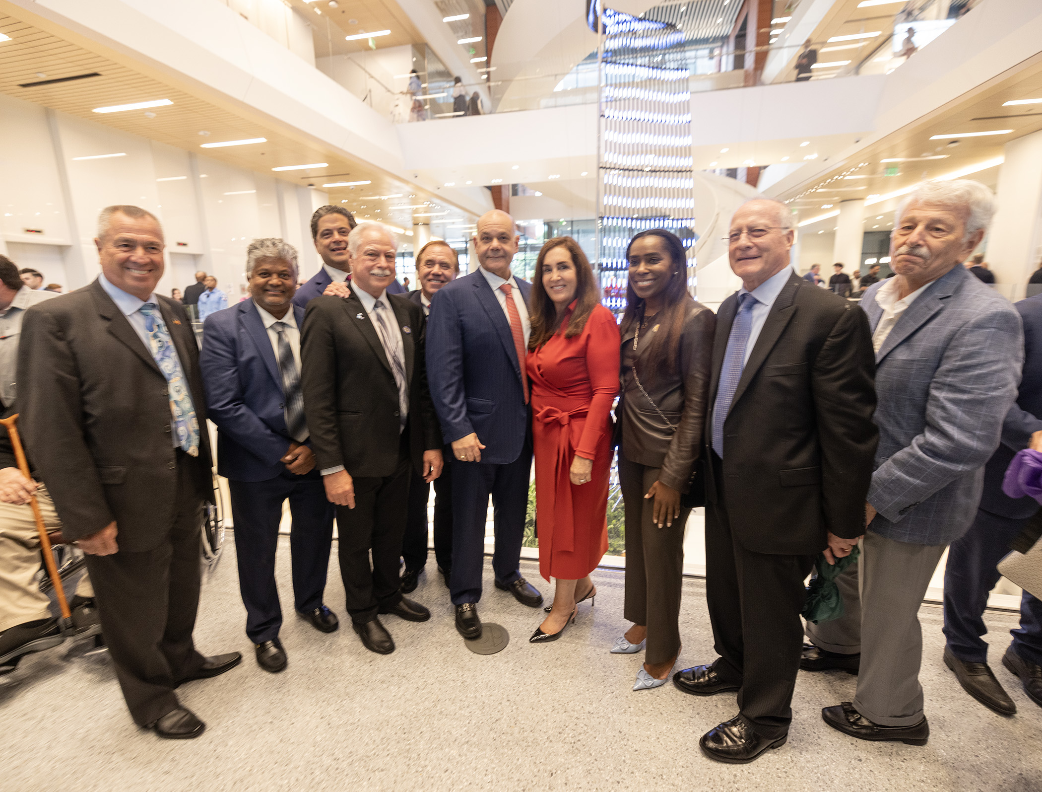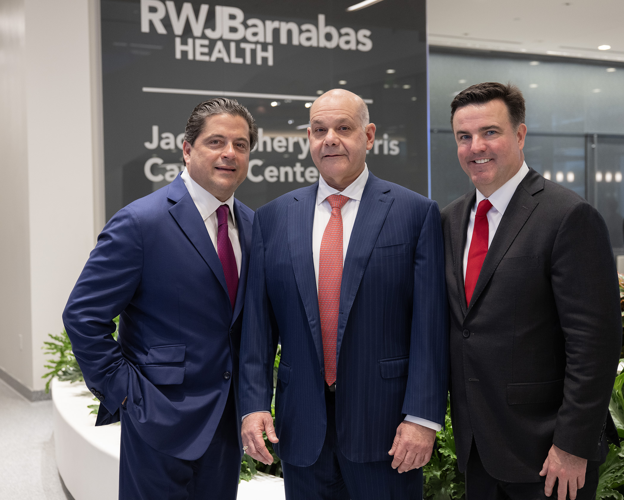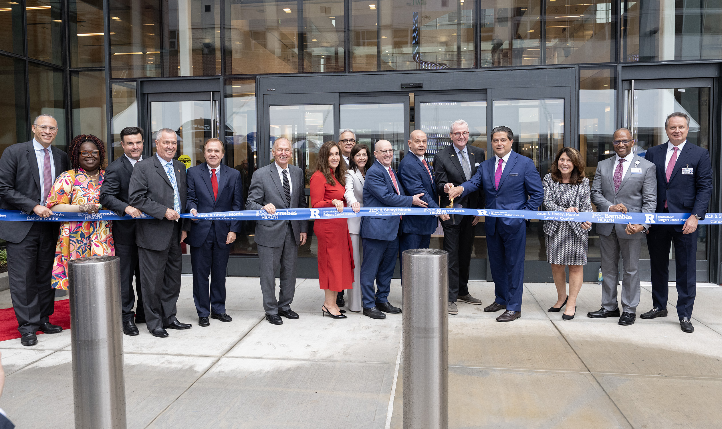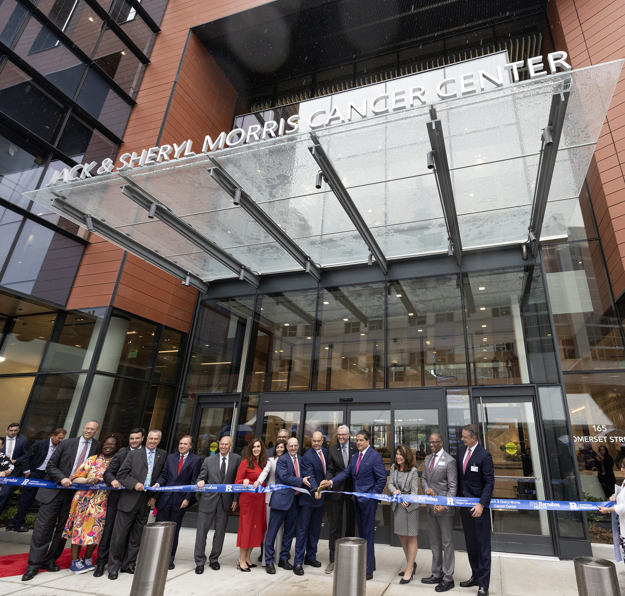 Leadership from RWJBarnabas Health, Rutgers Cancer Institute and Robert Wood Johnson University Hospital thank the employees of the new Jack & Sheryl Morris Cancer Center – now opened for patients