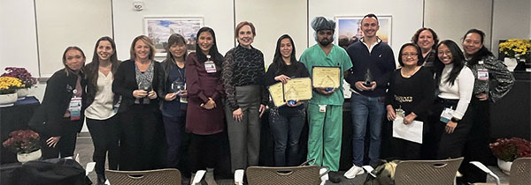 Jersey City Medical Center is committed to recognizing the exceptional practice and commitment of its nursing staff in addressing the strategic priorities of the organization. Nursing staff are supported in their professional development and opportunities for recognition by peers is provided. Each year our nursing staff nominates their peers whose performance exemplify the characteristics of Transformational Leadership, Exemplary Professional Practice, Structural Empowerment, New Knowledge Innovations and Improvement, and Empirical Outcomes. Our patient care technicians also nominate peers who exemplify the highest standards of patient care for the Excellence and Care award. Additional colleagues are also honored with our Interprofessional Collaboration award.