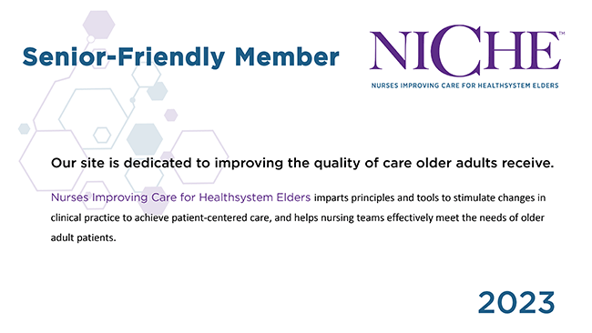 Jersey City Medical Center is proud to be a “Senior-Friendly” hospital recognized by the NICHE program. At Jersey City Medical Center, our interdisciplinary team understands the unique health care challenges faced by older adults and offer services to help them maintain their independence to live longer, healthier lives. Our Geriatric Resource Nurses (GRNs) and Geriatric Patient Care Associates (GPCAs) are present throughout JCMC and are trained to deliver age-sensitive care to older adults and their families.
