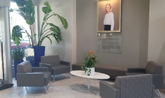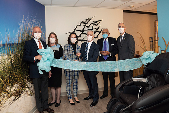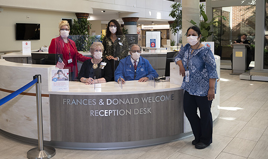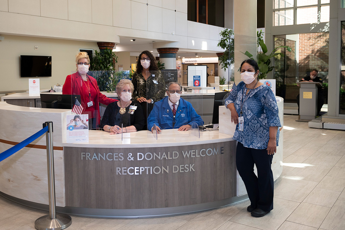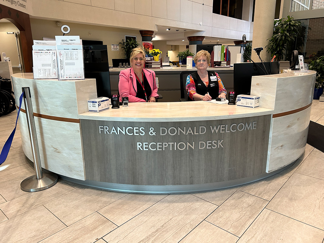 A major renovation of the hospital’s entrance foyer was recently completed as a part of an ambitious renovation of the main lobby. In recognition of the gift from the Grunin Foundation, the foyer was named the Linda Grunin Entry Hall. Additionally, main lobby staff at MMC are now welcoming patients, visitors and staff from the confines of a modern, beautifully appointed and easily accessible reception desk that offers ease of access with a 360-degree design. The Fran and Don Welcome Reception Desk, a signature element of the recent sweeping renovation of the hospital’s main lobby, is named for lifelong Long Branch area residents, and career public school teachers, H. Donald and the late Frances Welcome.