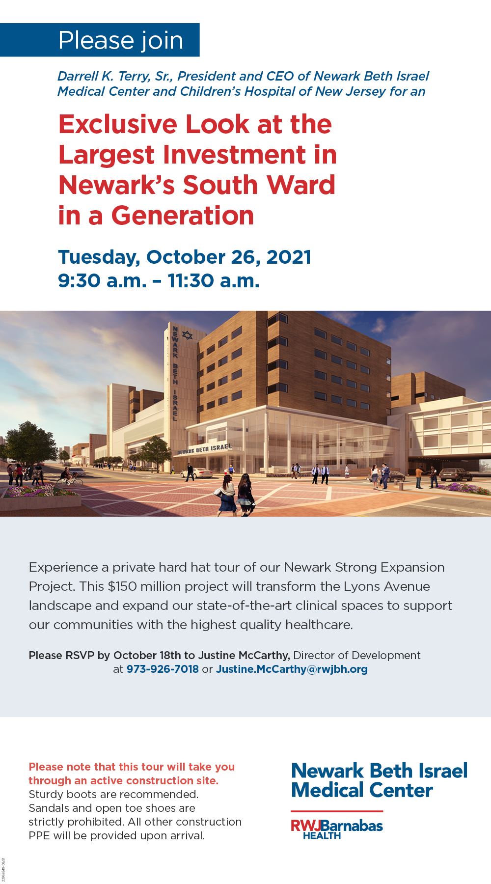 Experience a private hard hat tour of our Newark Strong Expansion Project. This $150 million project will transform the Lyons Avenue landscape and expand our state-of-the-art clinical spaces to support our communities with the highest quality health care.