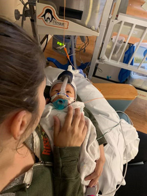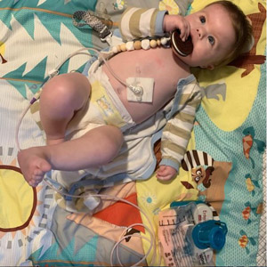 After about two weeks of being at Children’s, Danielle began doing all she could on her own to mimic what it would be like bringing Chase home. “I was able to transition to giving him all his medications, preparing feeds, changings, baths, and doing care for his G-tube,” shares Danielle. “Even waking up multiple times during the night to try and calm him if he woke up crying. We also were eventually tested on all of these procedures prior to discharge. This is what I had been working on with his care team and training to do since we arrived.”