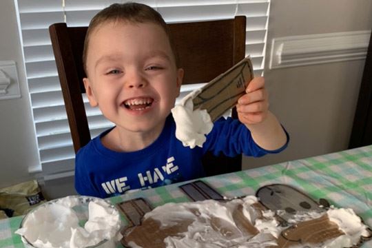 With the onset of the COVID-19 pandemic, Aiden went from seeing his therapists in person to utilizing telehealth services. “Vanessa and Heather have been the biggest help in this journey,” shares Kerry. “He gets so excited to see his therapists whether on screen or in person. He looks forward to talking and interacting with them.”