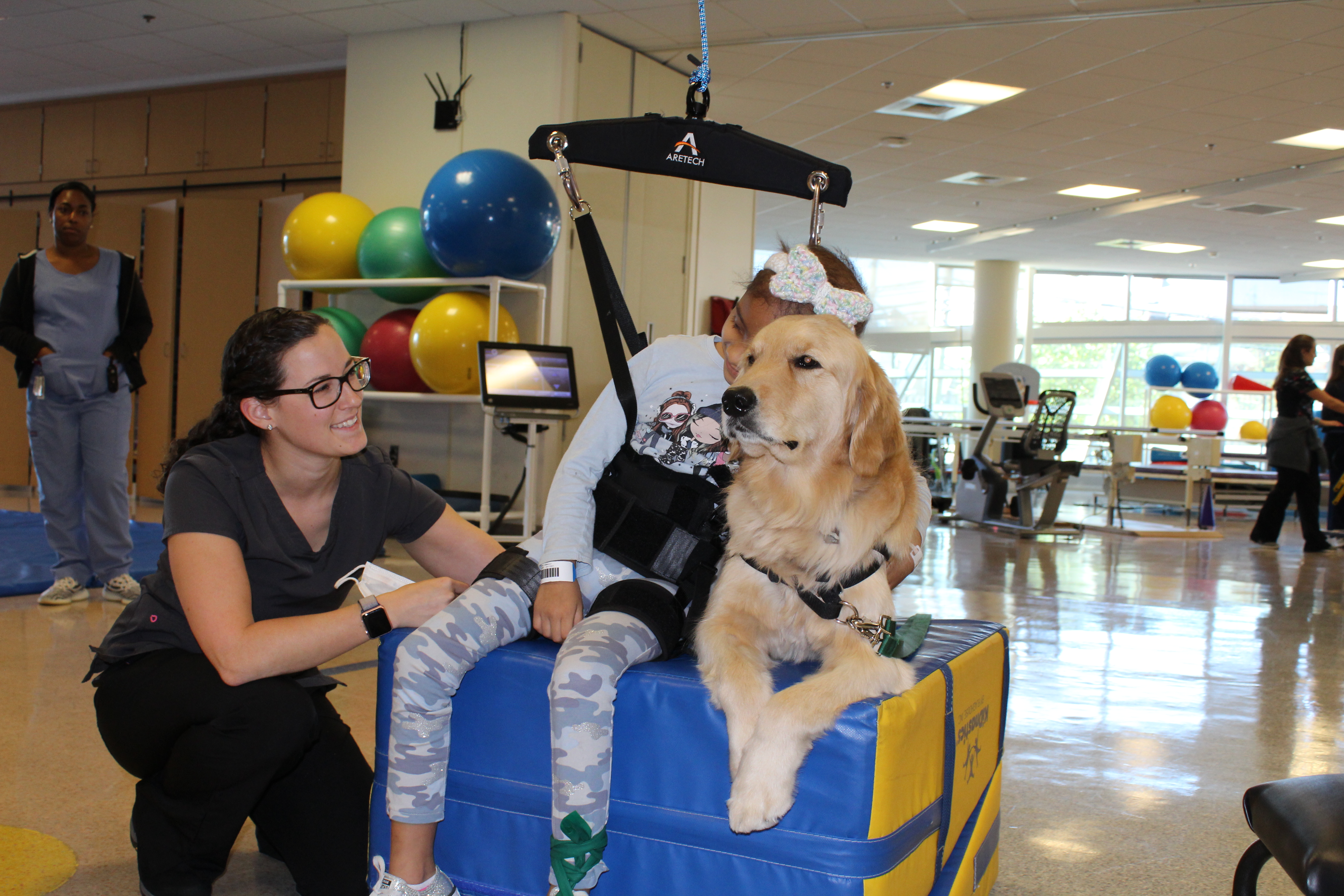 Emmaely’s rehabilitation included three months of inpatient intensive therapy at PSE&G Children’s Specialized Hospital. When she arrived at Children’s Specialized, Emmaely couldn’t walk or talk, but with the help of Burton, the hospital’s staff therapy dog, and her entire rehabilitation team, Emmaely has made great progress. Her therapies even helped her to develop a more positive outlook on her life, helping to put a smile back on her face.