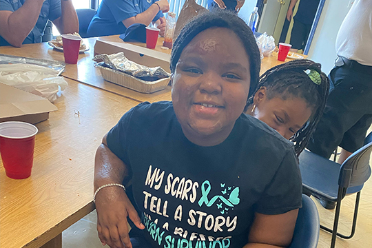 Once transported to The Burn Center, Alivia was ventilated and sedated. Alivia’s doctors were Dr. Marano, Robin A. Lee, MD, FACS, Associate Medical Director at The Burn Center, and Christina Lee, MD, FACS, Burn Surgeon. Alivia remembers that Kellie Saracino from the Child Life Program would visit her room.