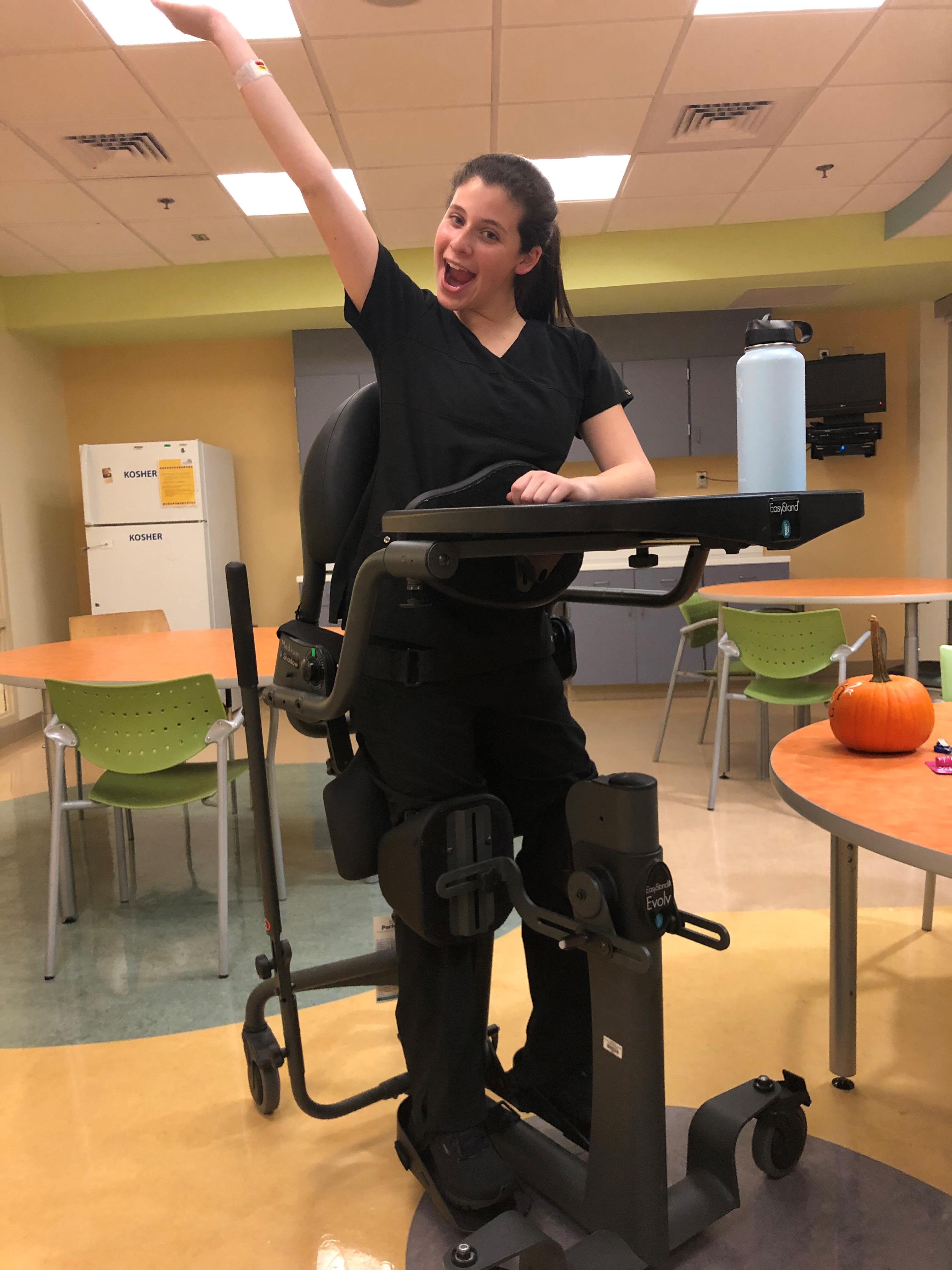 Scared and frustrated, Carly returned home where she went to her doctors and received the diagnosis of Functional Movement Disorder, a disorder affecting the way signals are sent throughout the brain. In an attempt to protect itself from further damage, Carly’s body ultimately shut itself down, causing her to lose all her progress she had made. She could not move her legs and her left arm or lift up her own head. Carly returned to CSH where her doctors and therapists were able to structure a comprehensive program of cognitive, psychological and physical/occupational therapies to help Carly learn to move and walk again even though she still cannot feel her lower half. Carly recalls working really hard during her therapies, but she says the environment was always positive and motivating and she remembers all the wonderful friends she made.