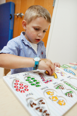 Jake was a toddler when he was diagnosed with ASD. This may sound early. But the ideal time of diagnosis is even earlier -- at 18 months. Says Jill Harris, Ph.D., psychologist and director of program development, “Diagnosing a child very early versus later can mean the difference in that child’s ability to speak and to participate as fully as possible in school and life.” That is why Children’s Specialized Hospital is tireless in its commitment to the earliest possible screening for ASD, followed by diagnosis and services.