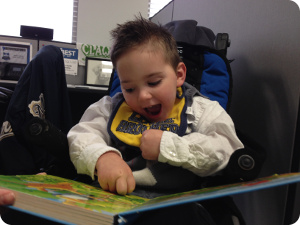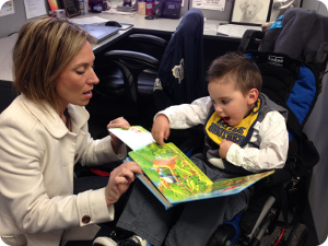 Mary refers to Gavin’s three therapists as her “dream team.” At Children’s Specialized Hospital, Stevens Road in Tom’s River his therapists are Kelly Lynch, physical therapist; Jennifer Kus, senior speech language pathologist; and Elke Van Hooydonk, senior occupational therapist. Gavin loves working with his therapists and never wants to leave his therapy sessions, which are every morning for an hour. The team is constantly giving the family new ideas and exercises for Gavin to work on at home. Not only does Gavin love working with his therapists, but in return they love working with this 3 year old beautiful and determined little boy.