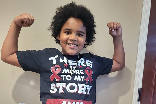 The Blakely family’s world flipped upside down when their eight-year-old son Santonio (Tony) suddenly suffered from a stroke caused by the rupture of an arteriovenous malformation (AVM) in the right frontal lobe of his brain. Tony was rushed into emergency open brain surgery at Robert Wood Johnson University Hospital in New Brunswick, NJ. An AVM occurs when arteries in the brain connect directly to nearby veins without having the normal small vessels between them. AVMs vary in size and location in the brain. It was later discovered that Tony’s AVM resulted from an undetected congenital disability.