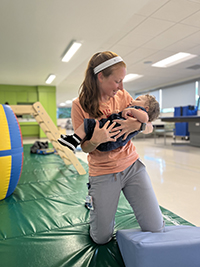 “Sergio has made such excellent progress over the past couple of months, and he loves to crawl around and explore his environments! We continue to work on his standing skills so he can continue to reach his gross motor milestones,” Marni describes.